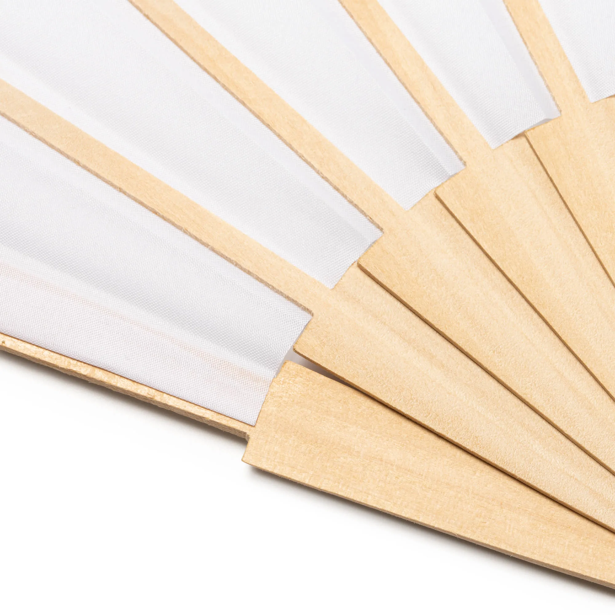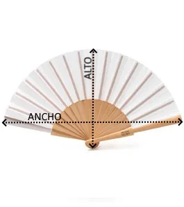 Abanico con varillas de madera y tela en RPET. Idóneo para tener aire fresco los días calurosos de verano.
