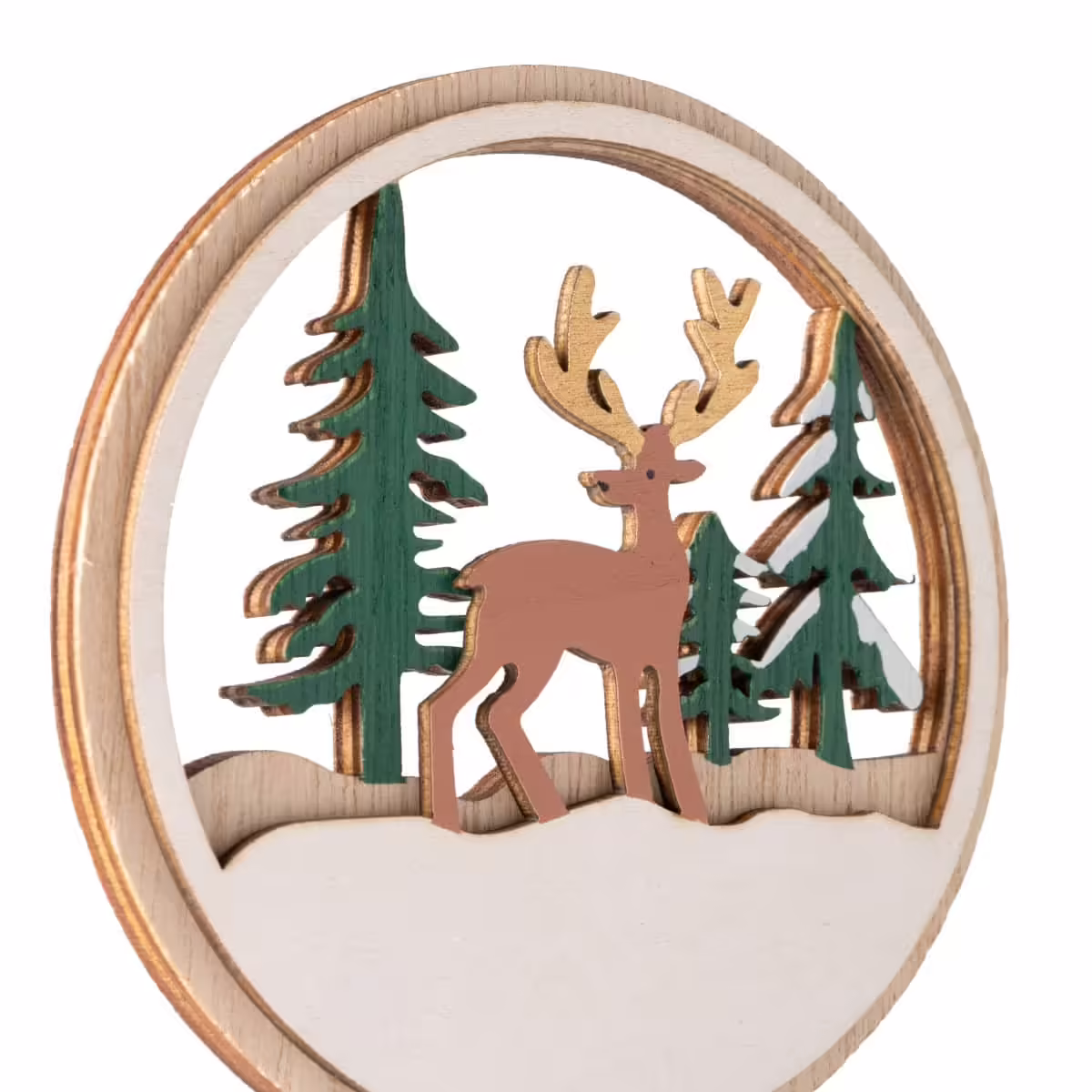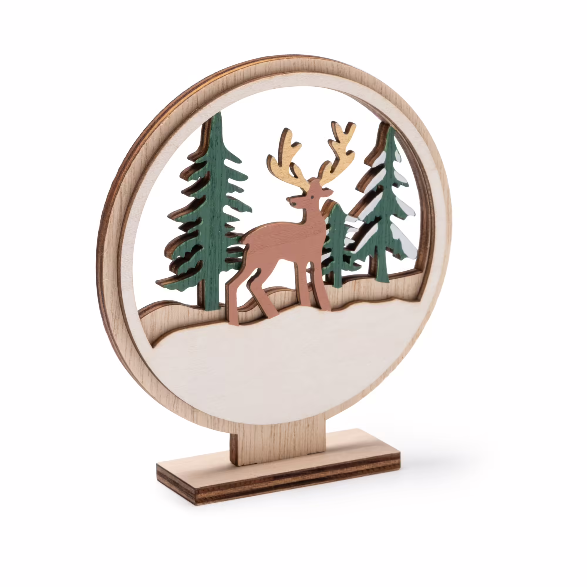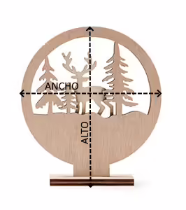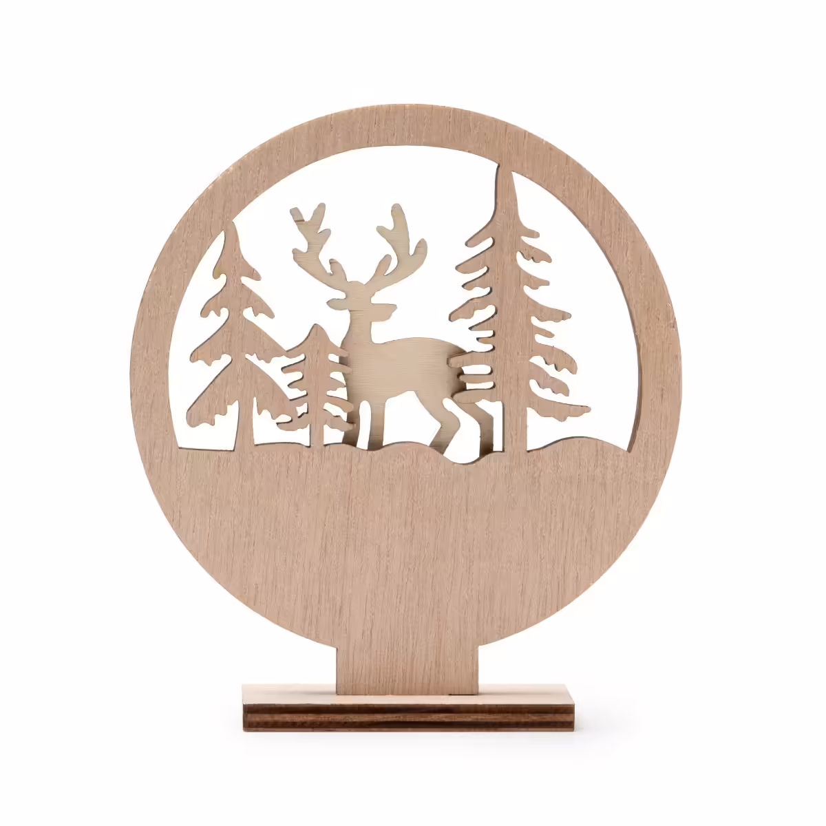 Adorno navideño de madera con base desmontable, ideal para decorar con encanto durante las fiestas.