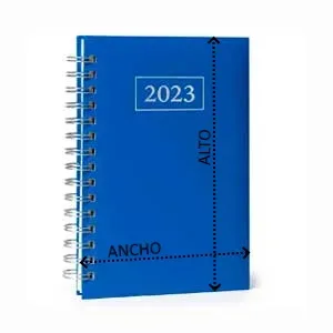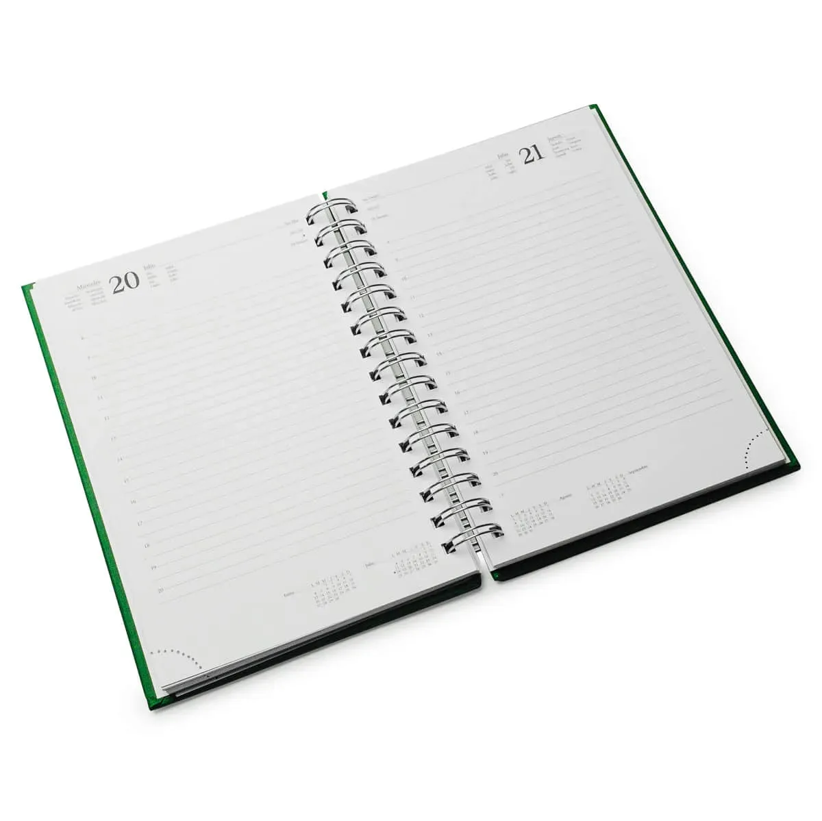 Agenda con anillas tamaño A5. Tapas de PU acolchadas con grabado bajo relieve. 352 páginas. Diseño página día con esquinas troqueladas.