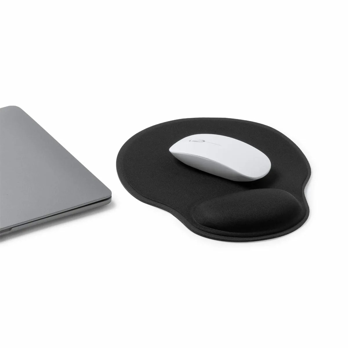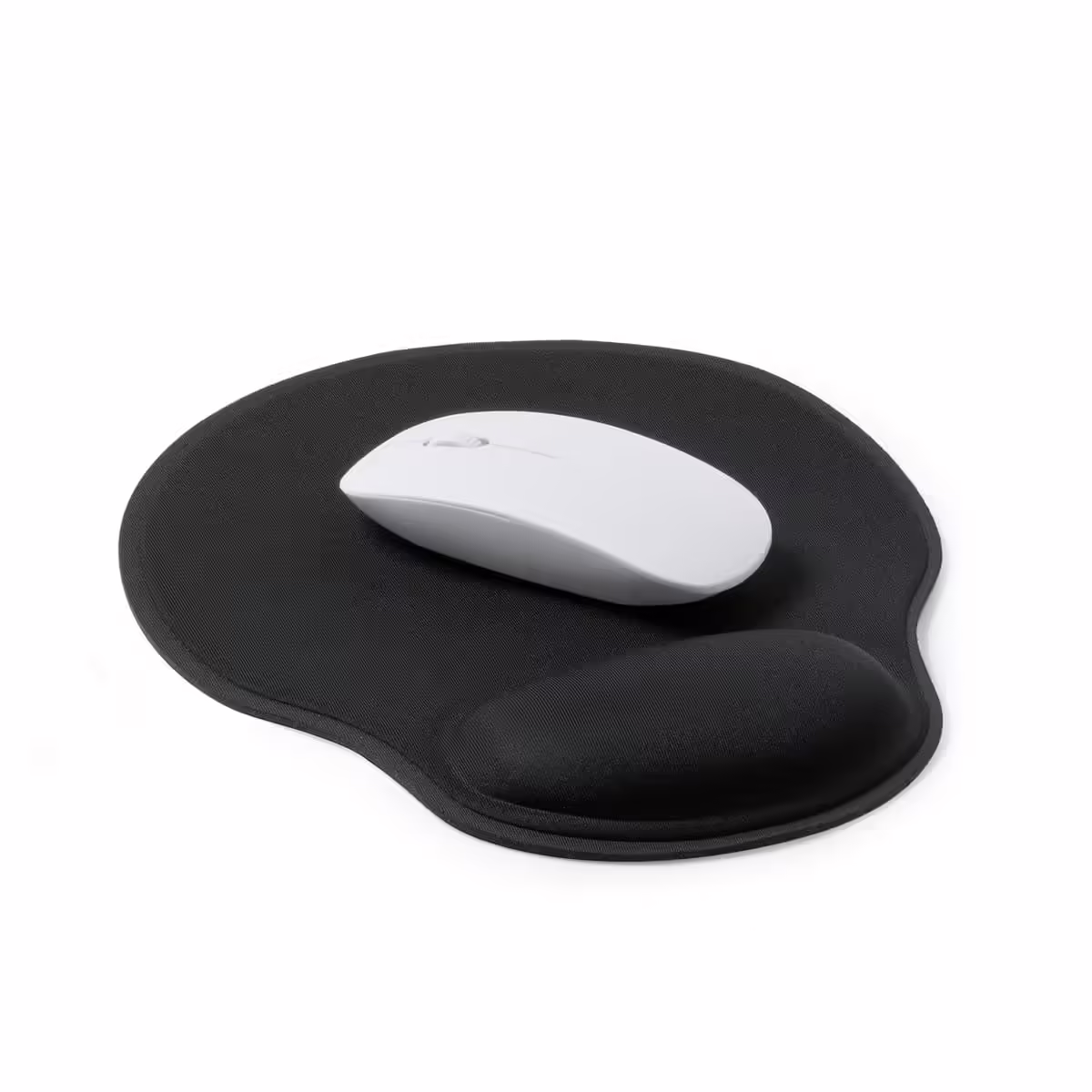 Alfombrilla para ratón realizada en suave poliéster con reposamuñecas acolchado. Base antideslizante de silicona.