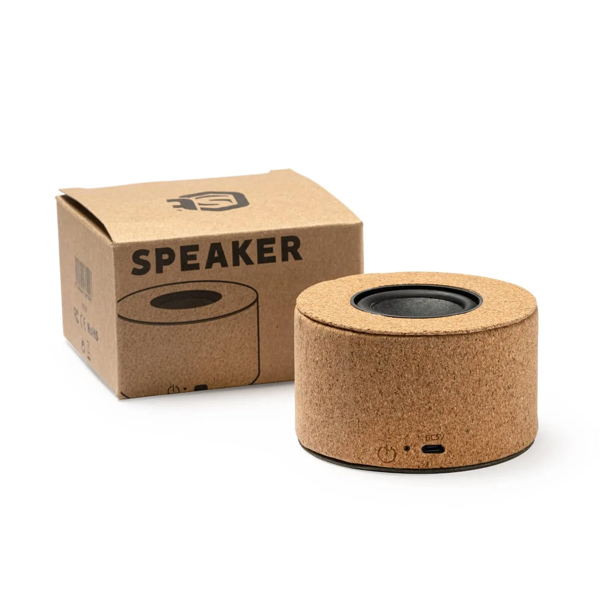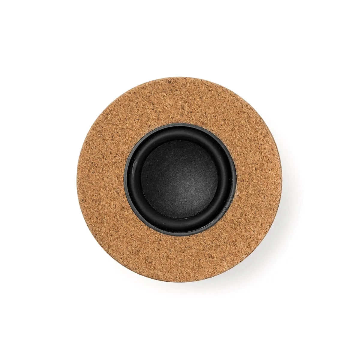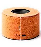 Altavoz con cuerpo de corcho natural y membrana visible. Bluetooth 5.0. Potencia 3W. Batería recargable. Cable incluido.