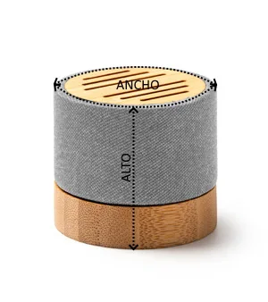 Altavoz inalámbrico con cuerpo de bambú y tejido RPET de diseño. 3W de potencia y batería recargable. Conexión Tipo C. Cable incluido. Altavoz elaborado con materiales ecológicos con el fin de reducir las emisiones contaminantes.