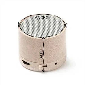 Altavoz inalámbrico realizado en fibra de trigo. Función radio FM, tarjeta micro SD y manos libres. 3w de potencia. Cable incluido.