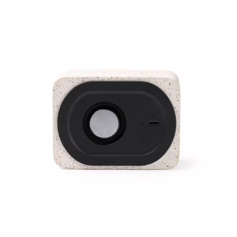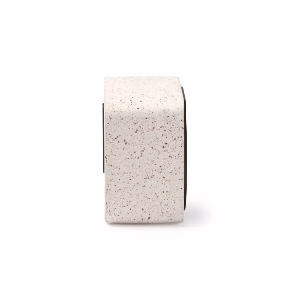 Altavoz inalámbrico con cuerpo realizado en piedra de terrazo reciclado y bambú. Potencia 5W. Cable tipo C incluido.