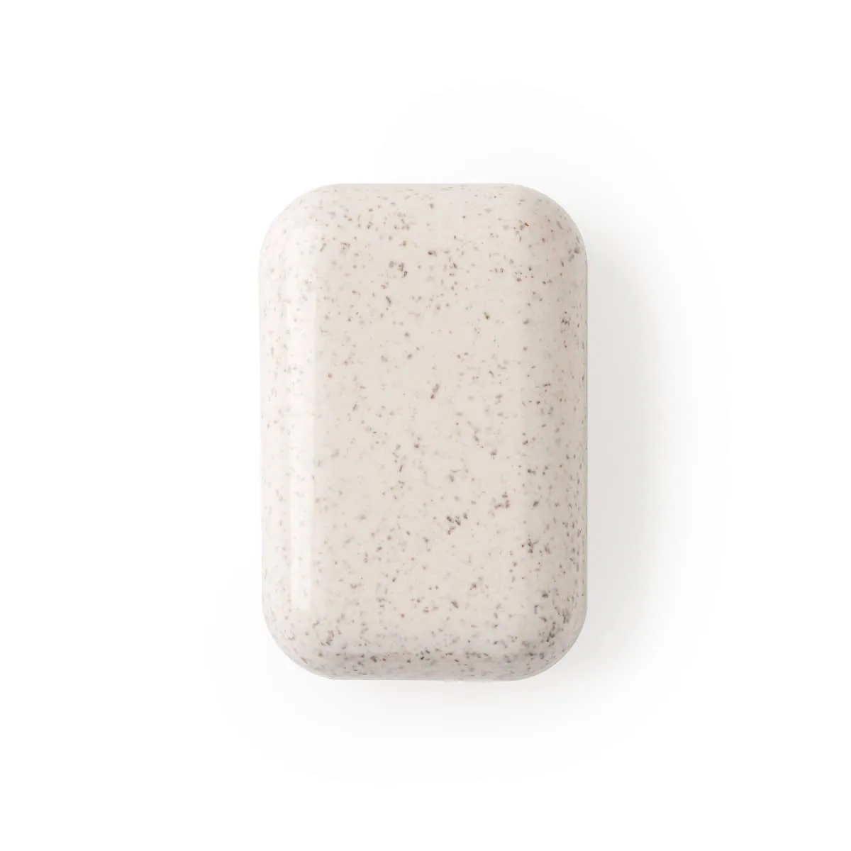 Auriculares inalámbricos Bluetooth 5.0 realizados en fibra de trigo con estuche de carga. Panel de control con tecnología táctil integrado en auricular. Función manos libres. Estuche con batería recargable y tapa imantada. Cable incluido.
