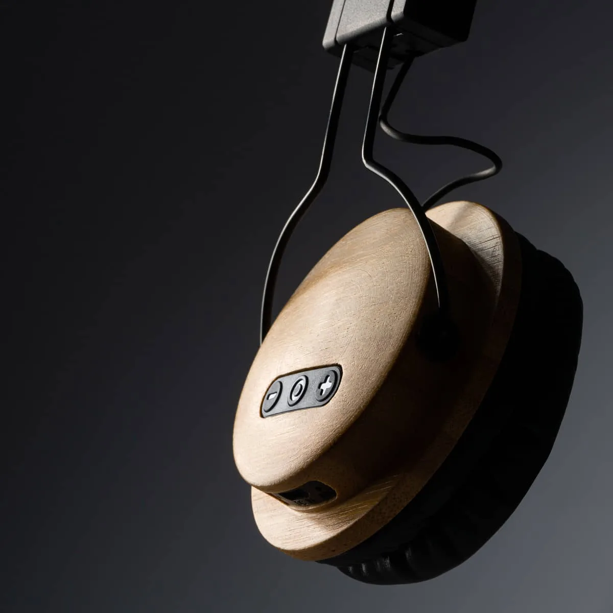 Auriculares inalámbricos de bambú y tejido RPET. Extensibles. Diadema y almohadillas acolchadas. Panel de control integrado con tecnología estéreo. Función manos libres. Batería recargable. Cable Tipo C incluido.