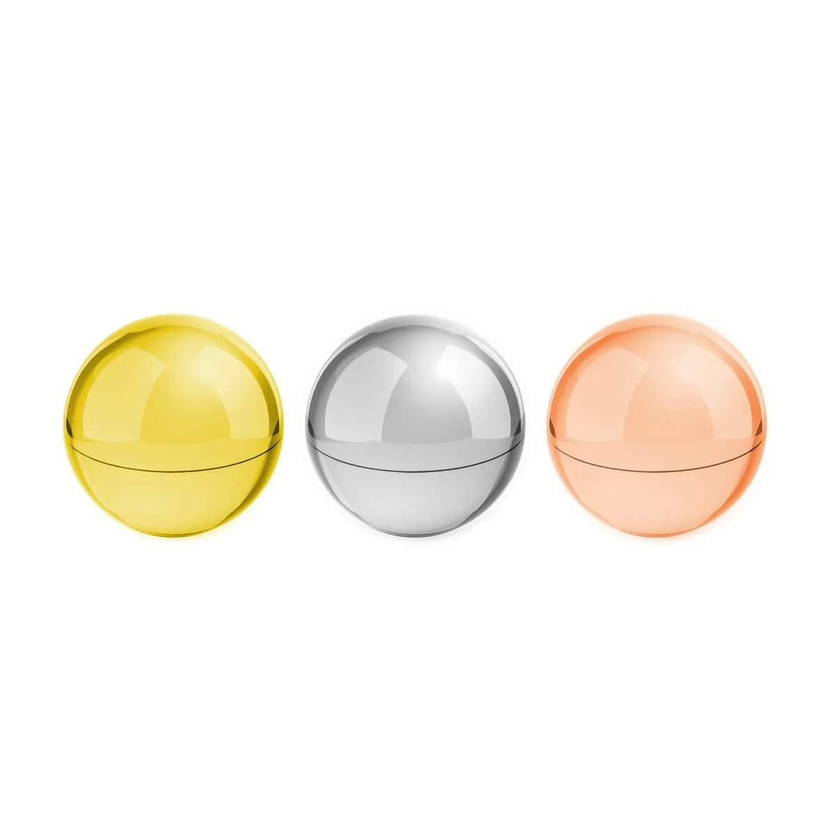 Bálsamo labial presentado en estuche de diseño tipo esfera con acabado cromado. Protección SPF15.