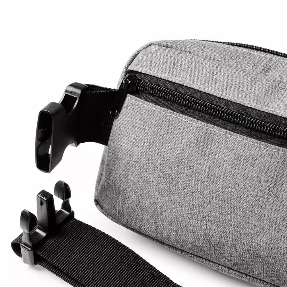 Riñonera realizada en 300D RPET con bolsillo frontal.