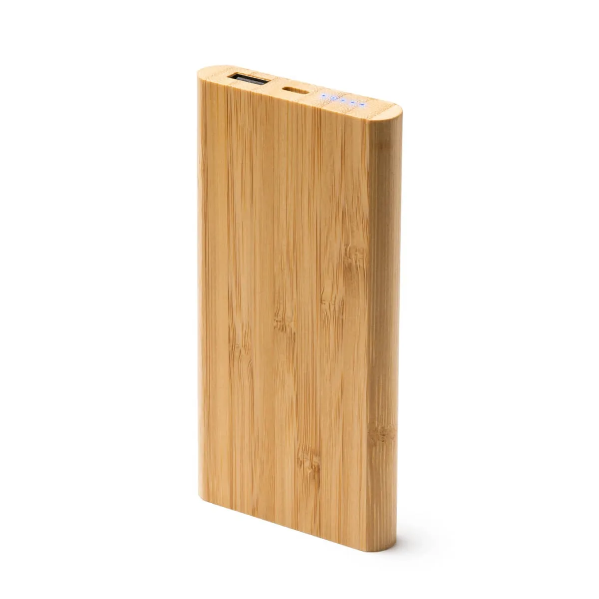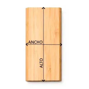 Batería externa de 6000 mAh con función carga inalámbrica. Cuerpo de bambú natural. Salida corriente DC5V/2.1A, inalámbrica DC5V. Incluye cable tipo C.