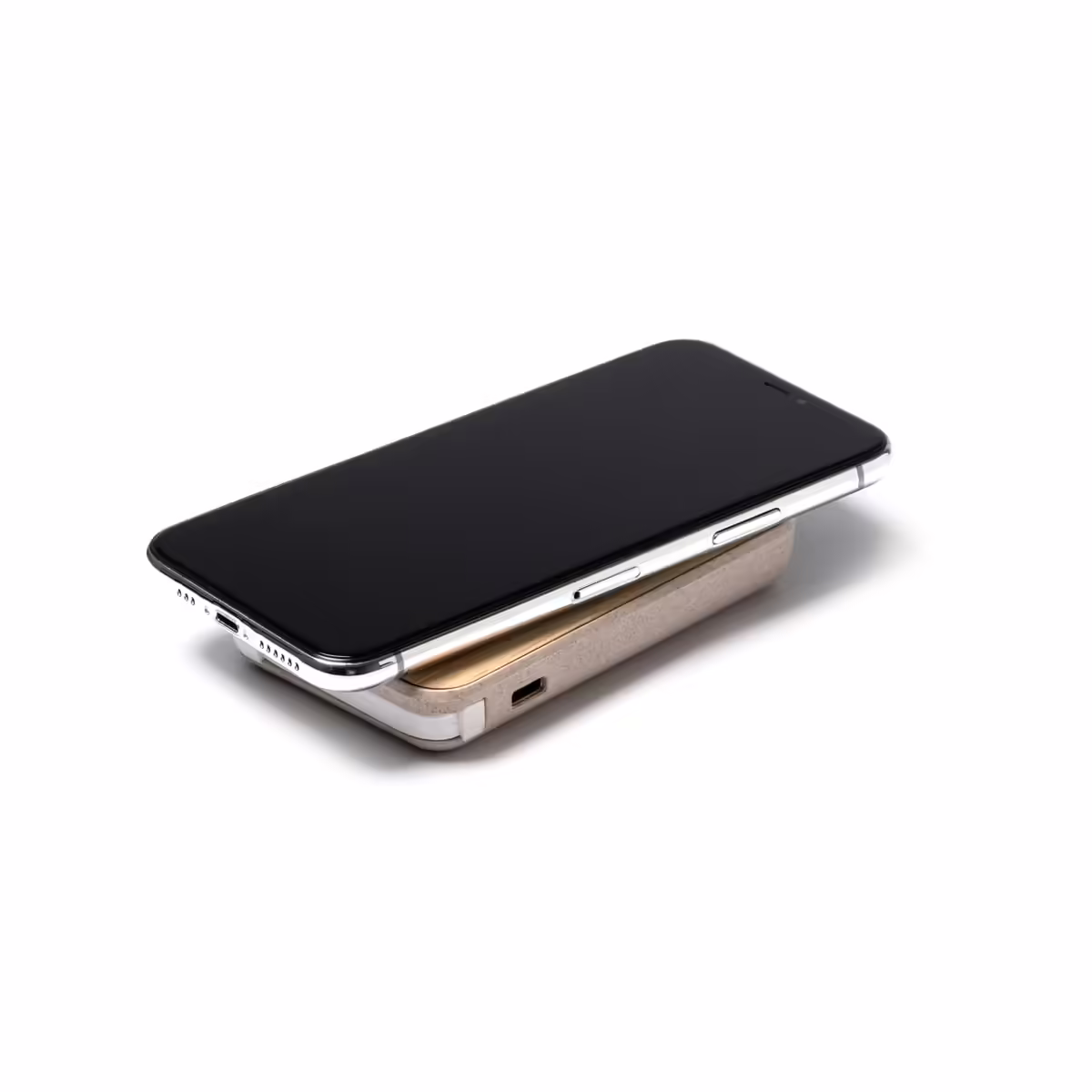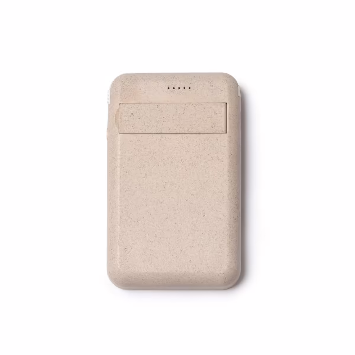 Con la batería externa de 5000 mAh con cuerpo de bambú y fibra de trigo y cargador inalámbrico magnético, puedes mantener tus dispositivos cargados de manera conveniente y respetuosa con el medio ambiente, mientras disfrutas de la comodidad del soporte integrado.