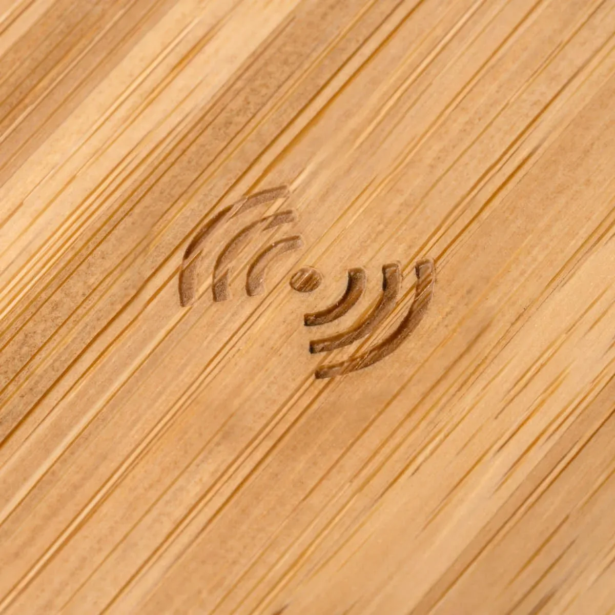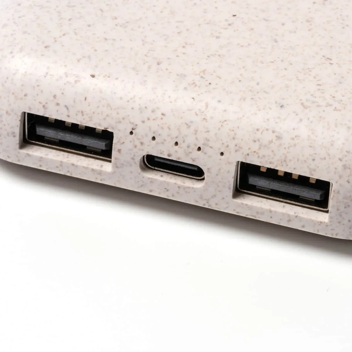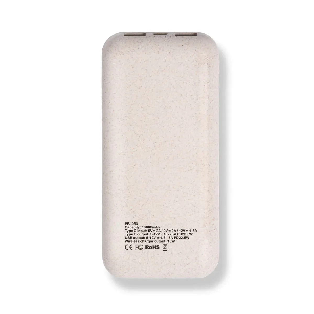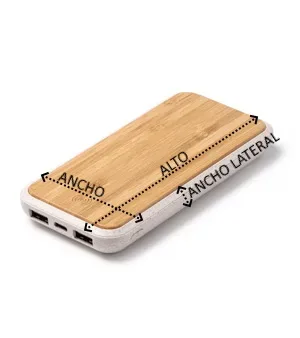 La batería externa de 10000 mAh con cuerpo compuesto de bambú y fibra de trigo, cuenta con un cargador inalámbrico ofreciendo una solución práctica y sostenible para mantener tus dispositivos cargados en movimiento. Con su capacidad de 10000 mAh, proporciona una carga confiable y duradera.