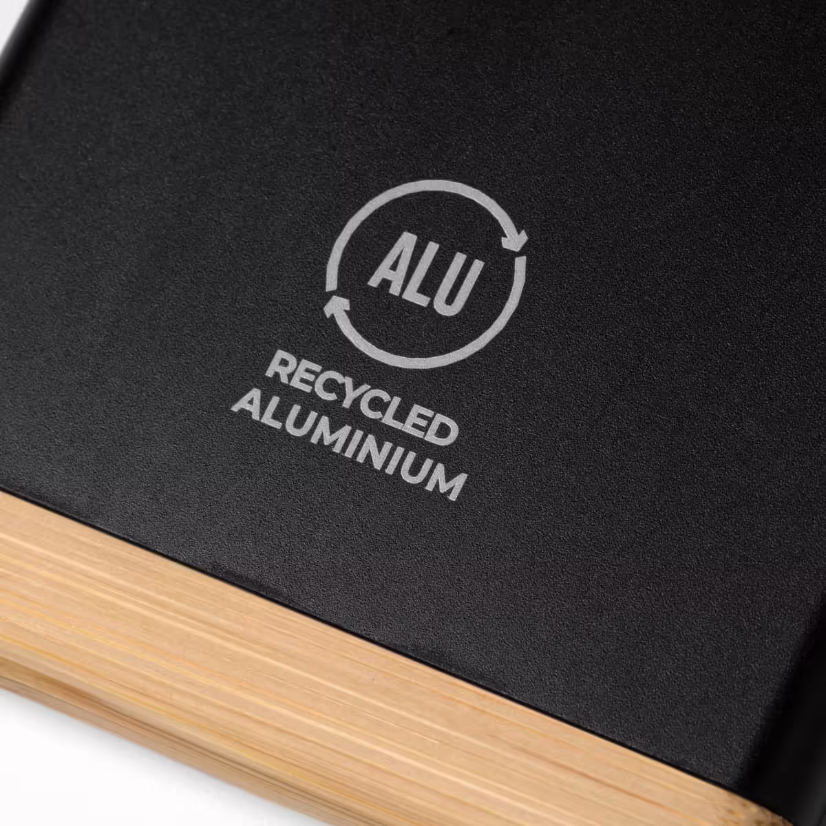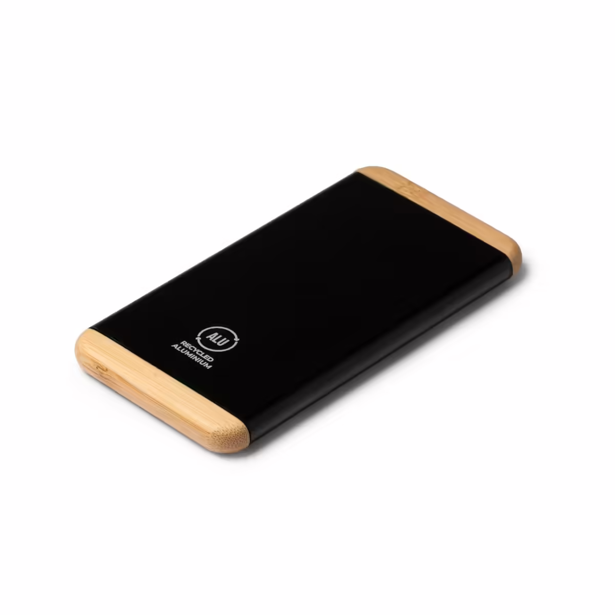 Batería externa de 5.000 mAh combina un cuerpo de aluminio reciclado y bambú, ofreciendo una solución de carga sostenible y eficiente. Dispone de entrada y salida Tipo C y USB, con el cable correspondiente incluido. Ideal para mantener tus dispositivos cargados en cualquier lugar, se presenta en una caja de diseño ecológico, destacando su compromiso con el medio ambiente y su funcionalidad moderna.