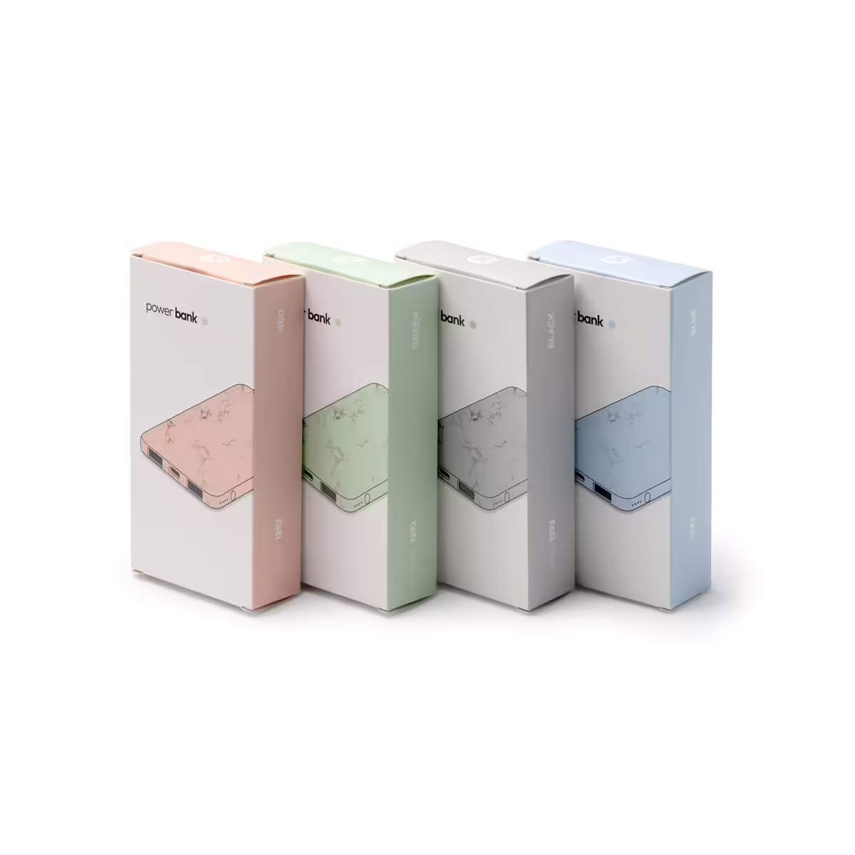Batería externa realizada a partir de tapones de botella recilados. Capacidad 5000 mAh. Entrada Tipo C. Salida USB y Tipo C.