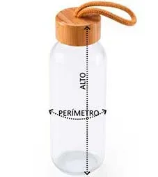 Bidón de cristal de 450ml con tapón de bambú y cintra transporte de acabado natural. Presentación en caja diseño.