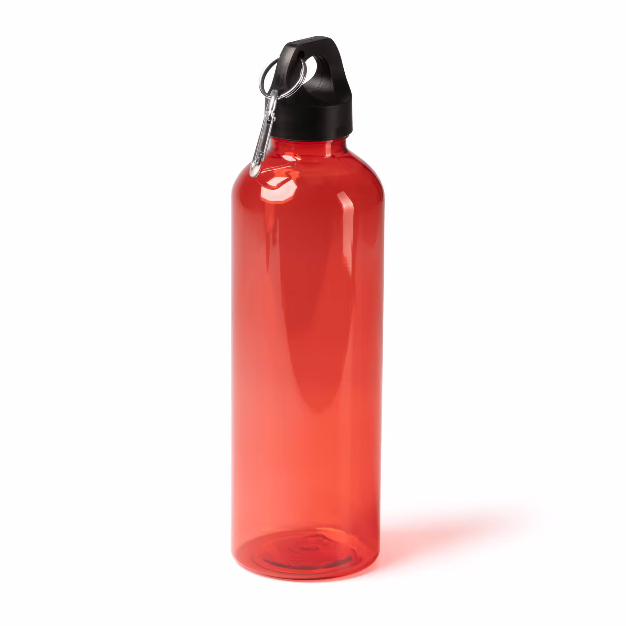 Botella con cuerpo de RPET. Tapa y asa de transporte con mosquetón. Capacidad 800 ml.