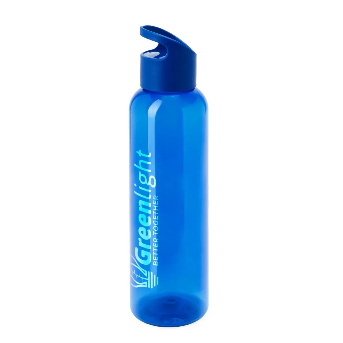 Bidón de tritán con cuerpo en color translúcido. Tapón a juego con asa de transporte integrada. Capacidad 650ml. Presentación en caja diseño.