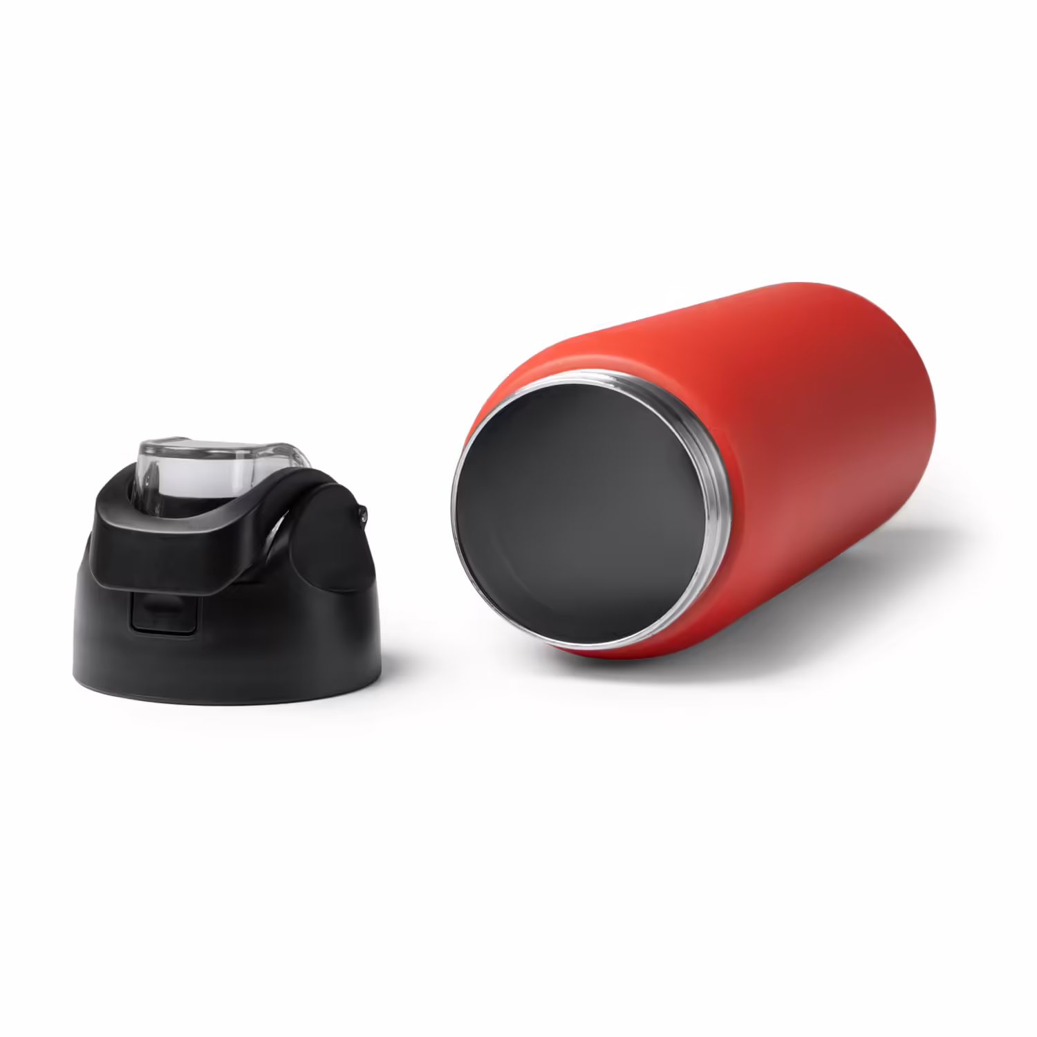 Bidón térmico con cuerpo en acero inoxidable 304 reciclado de doble pared. Tapa con botón de apertura y asa de transporte. Capacidad 930 ml.