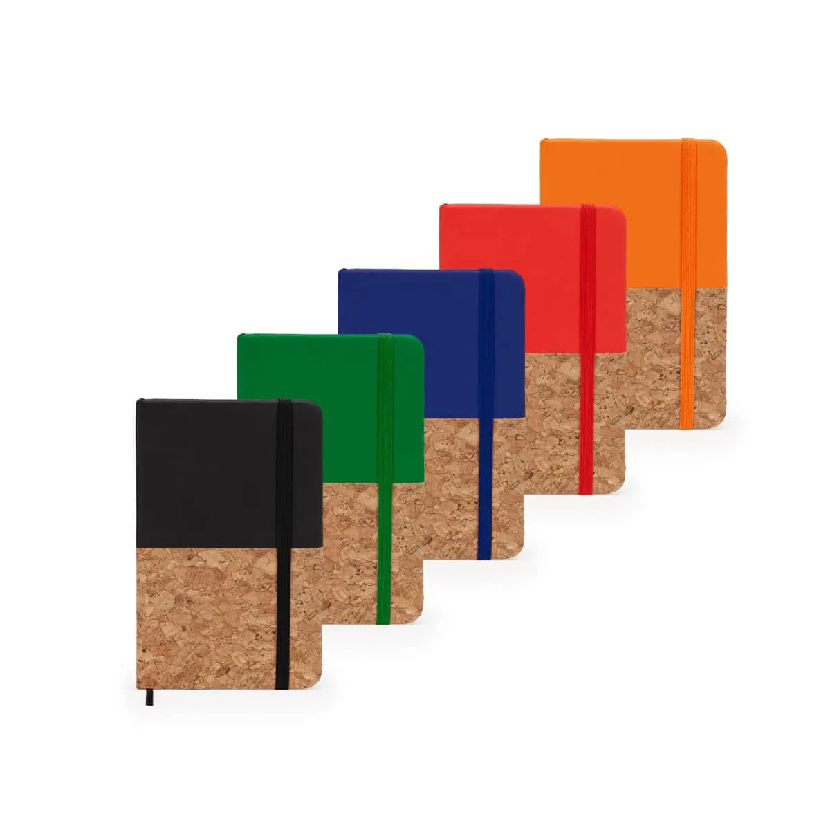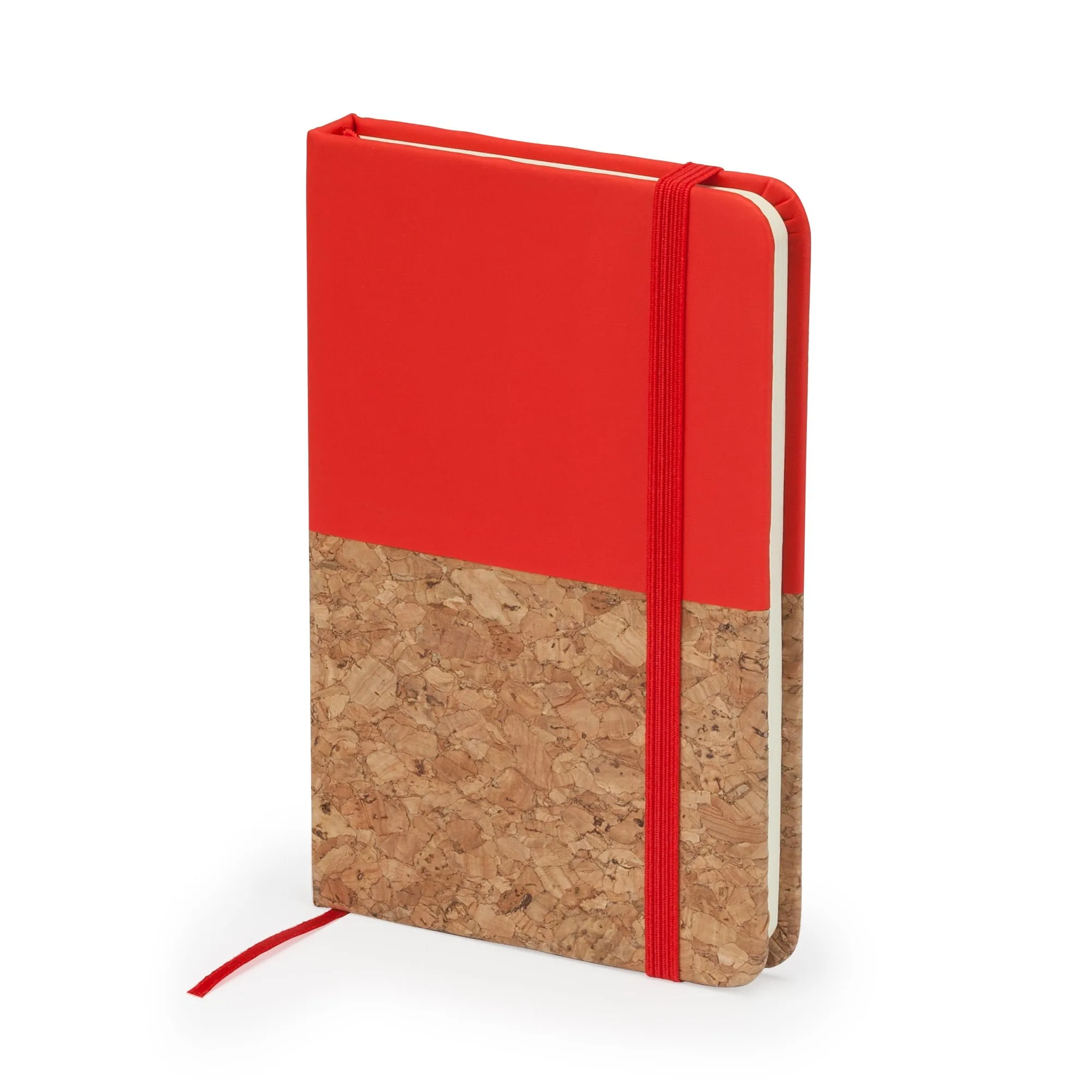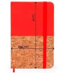 Bloc de notas A6. Tapa rígida mixta corcho / polipiel. Marcapáginas y banda elástica. 80 hojas.