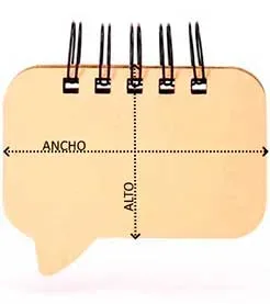 Bloc de notas adhesivas con anillas y original diseño en forma de bocadillo. Tapas de cartón reciclado rígido. Incluye notas adhesivas en colores variados de dos tamaños: 100 grandes y 125 pequeñas.