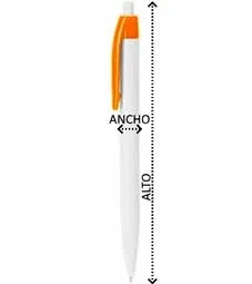 Bolígrafo de ABS con pulsador. Cuerpo en color blanco y clip en variada gama de colores. Carga de tinta azul.
