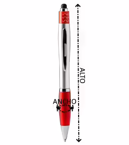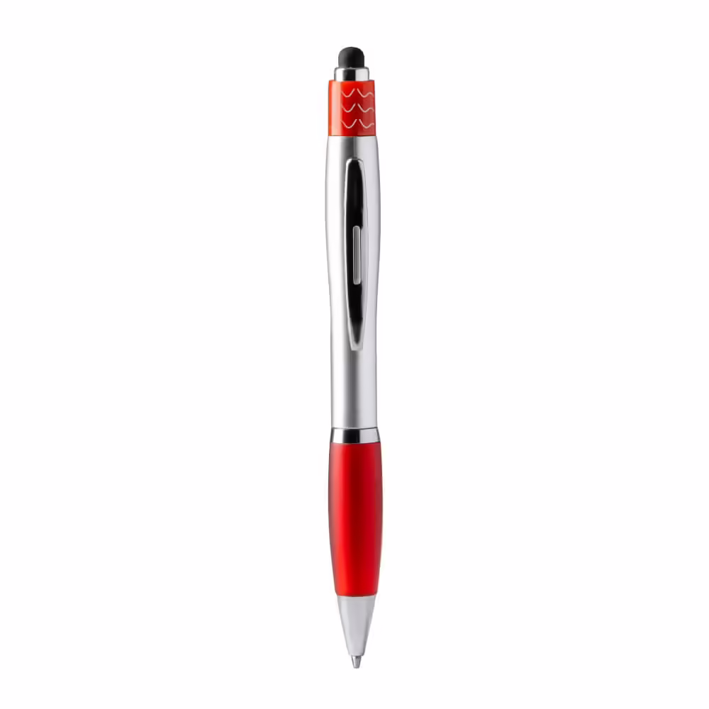 Bolígrafo giratorio con spinner antiestrés. Cuerpo en ABS y clip metálico. Cómoda empuñadura a color. Puntero táctil y acabado metalizado. Tinta azul.