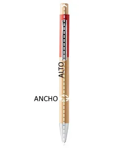 Bolígrafo con cuerpo y pulsador de bambú. Detalle en color de tacto suave. Punta y clip metálicos. Tinta azul.
