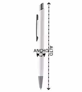Bolígrafo pulsador con cuerpo de aluminio reciclado y detalles en acabado metálico mate. Tinta azul.