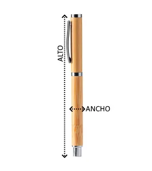 Bolígrafo tipo roller con cuerpo de bambú y detalles metalizados. Carga jumbo de tinta azul.
