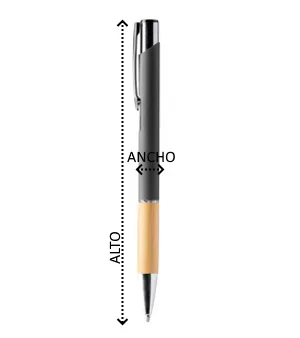 El bolígrafo con cuerpo de aluminio y empuñadura de bambú ofrece una combinación única de durabilidad y elegancia. El cuerpo de aluminio brinda resistencia y ligereza, mientras que la empuñadura de bambú agrega un toque natural y sofisticado.