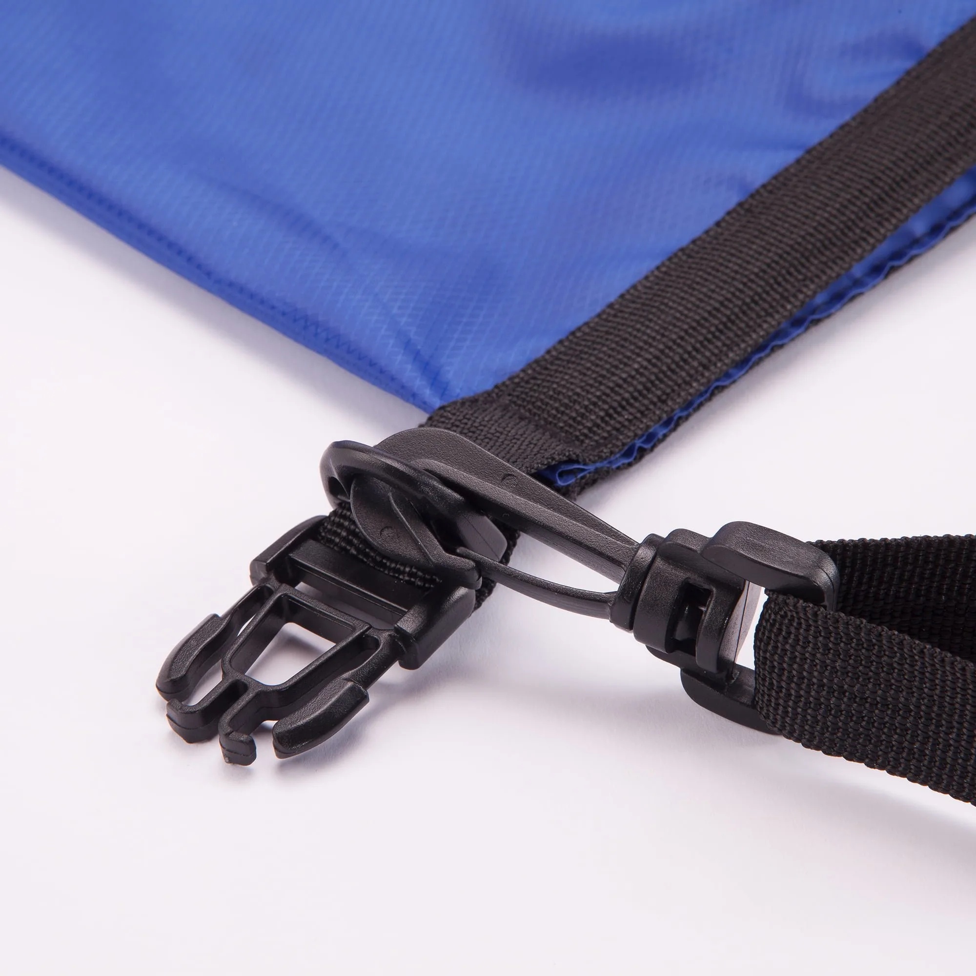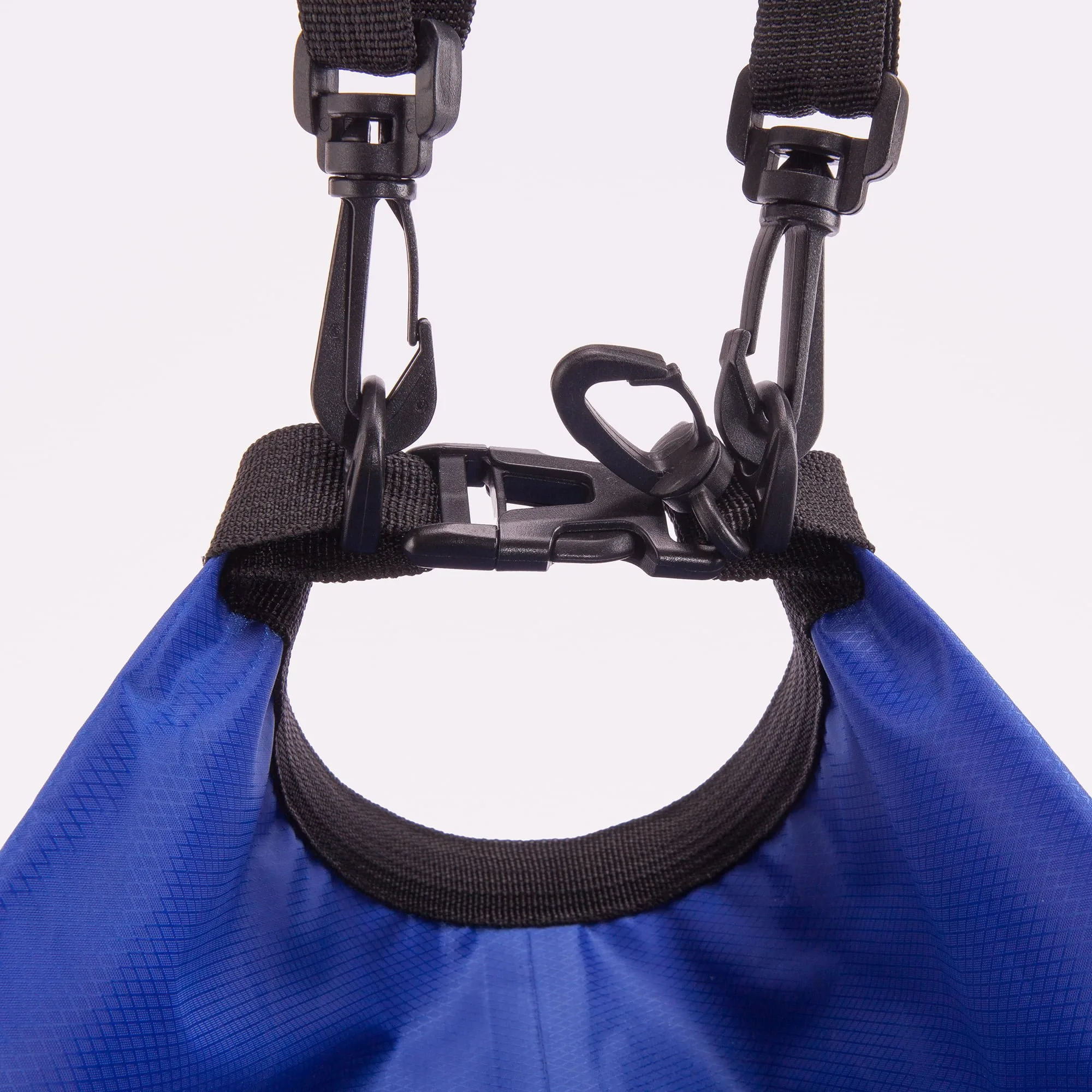 Bolsa impermeable de resistente ripstop. Sistema de cierre estanco con clic. Mosquetón y cinta bandolera ajustable para transporte. Capacidad útil 10L. Capacidad total 15L.