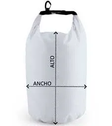 Bolsa impermeable de resistente ripstop. Sistema de cierre estanco con clic y mosquetón para transporte. Capacidad útil 5L. Capacidad total 8,5L