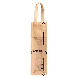 Bolsa de yute laminado con ventana. Asas reforzadas. Ideal para transportar botellas.