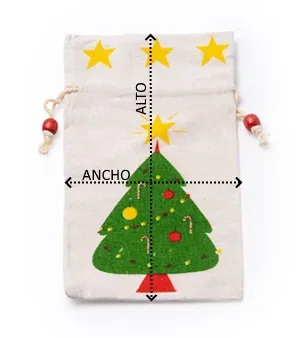 Bolsa para regalo 100% de algodón con diseño de un árbol de Navidad. Es una opción encantadora para envolver tus obsequios durante la temporada navideña.