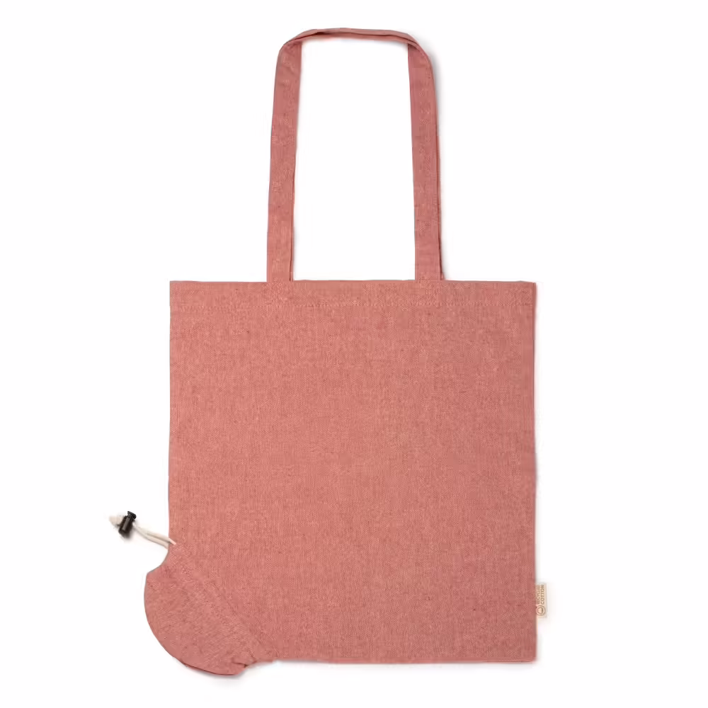 Bolsa plegable de algodón reciclado 120 g/m² a color, asas largas de 70 cm y cordón para plegado ajustable.