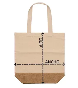 Bolsa realizada en algodón reciclado de 330 g/m² y jute natural. Asas de 70 cm.