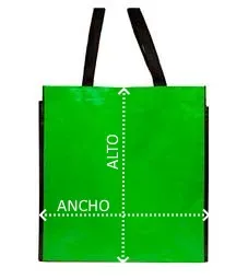 Bolsa reutilizable de acabado laminado brillante. Resistente material con asas reforzadas de nylon y ribetes a juego en negro.