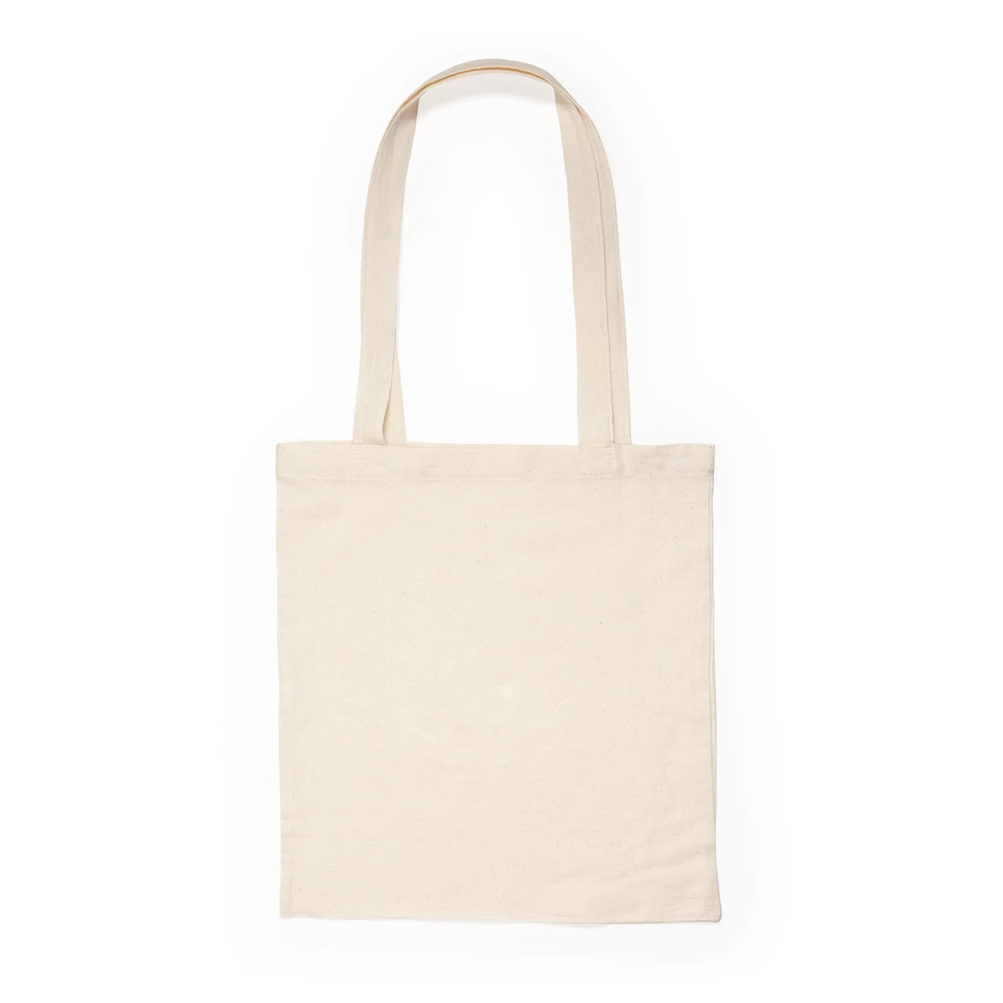 Bolsa de la compra 100% de algodón 105gr/m2 cosida. Con prácticas asas largas reforzadas de 70cm.