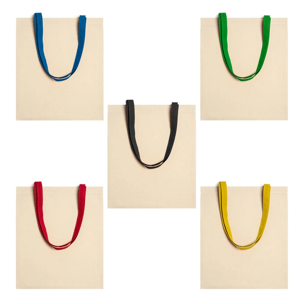 Bolsa 100% de algodón 100 g/m². Asas largas de 70 cm a color.