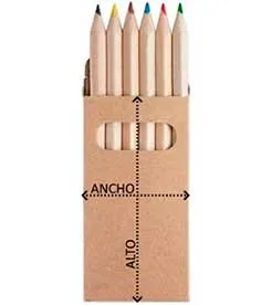 Set de 6 lápices de madera en caja de cartón reciclado.