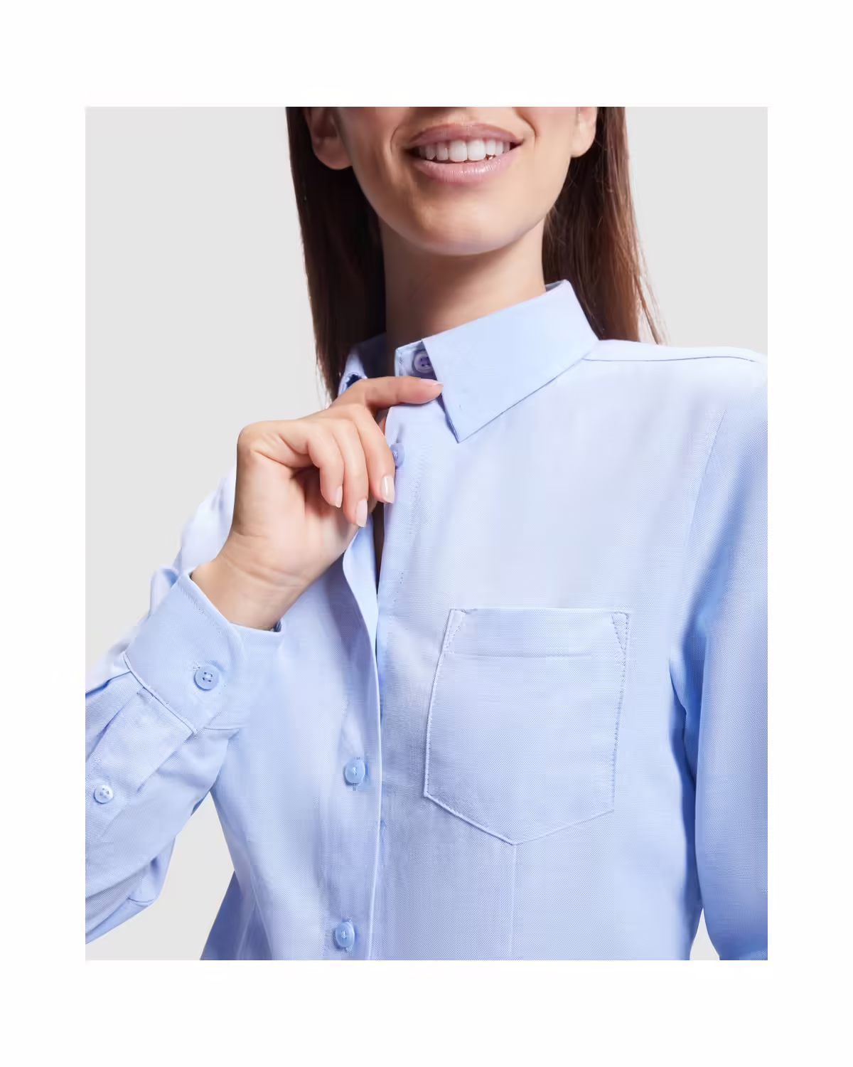 Por eso, te recomendamos la camisa de manga larga Oxford Woman de la casa Roly.