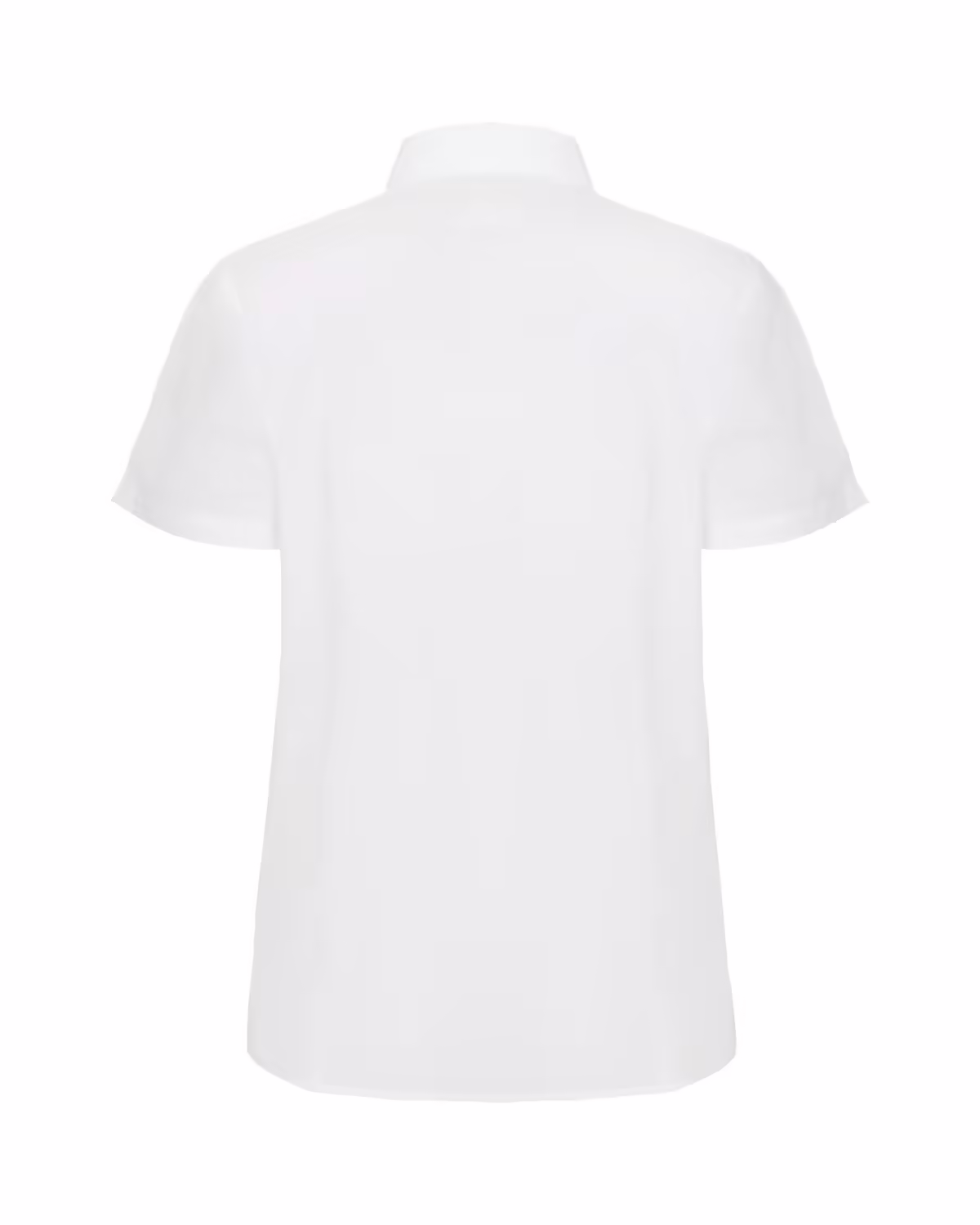 La camisa laboral Sofia para mujer está disponible desde la talla S hasta la talla 2XL y en color blanco o negro