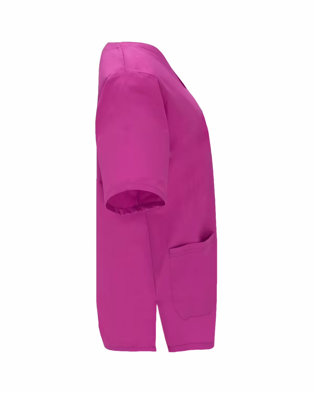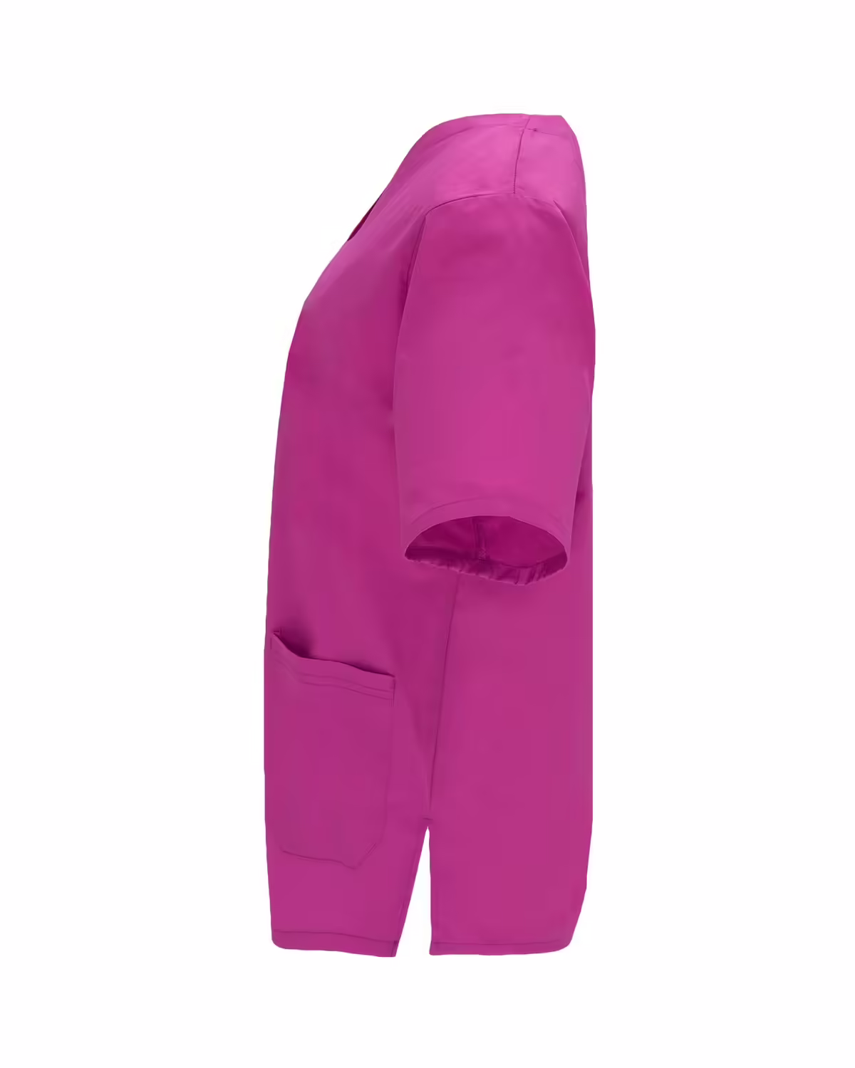Casaca de servicios unisex de manga corta y escote de pico cruzado. Un bolsillo en pecho y dos bolsillos laterales. Aperturas laterales.