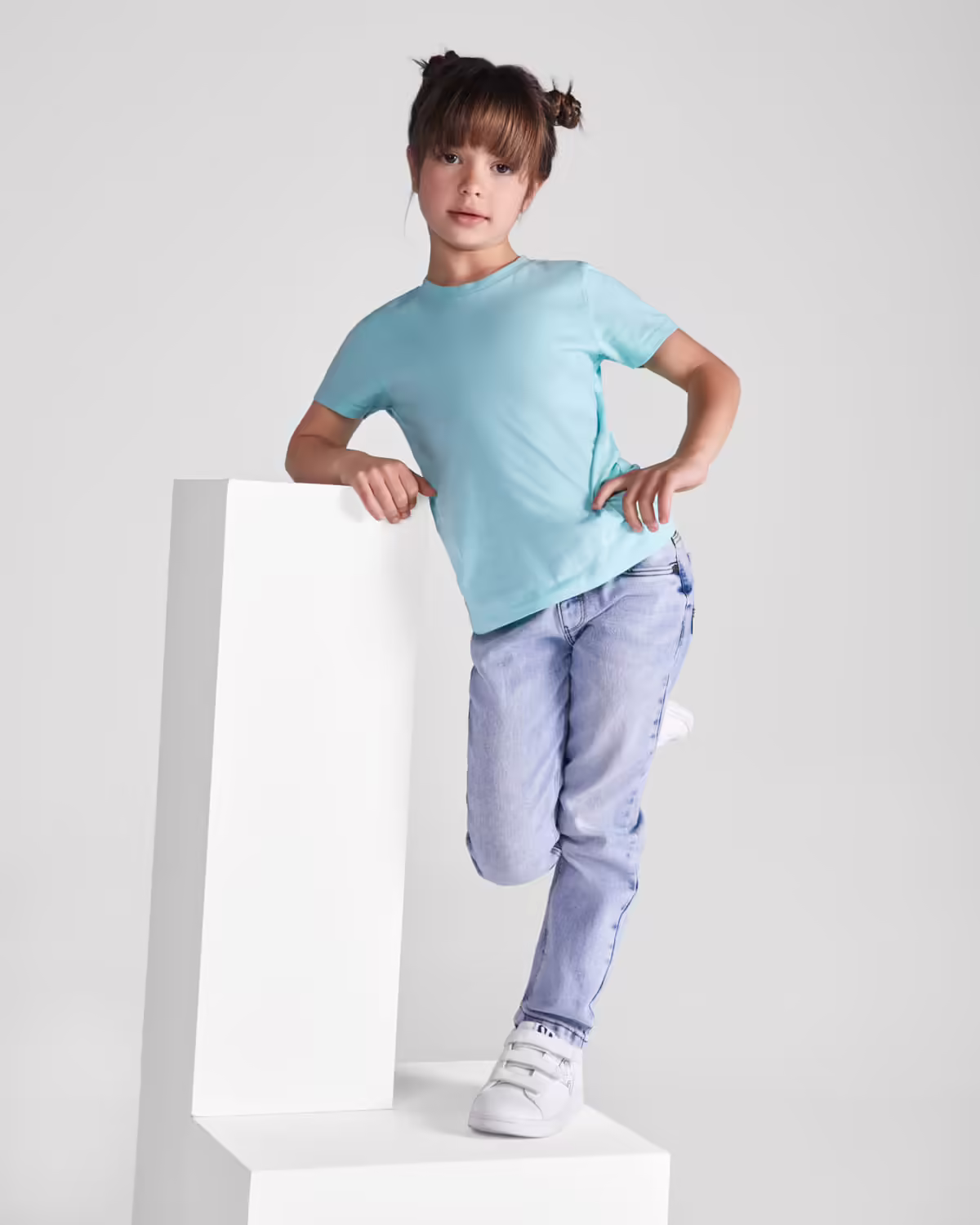 La camiseta unisex infantil Golden está disponible desde la talla 3/4 hasta la 11/12 y en nueve colores, ocho son lisos y uno vigoré (blanco, negro, azul marino, rojo, gris vigoré, blanco vintage, ébano, ópalo y verde menta).