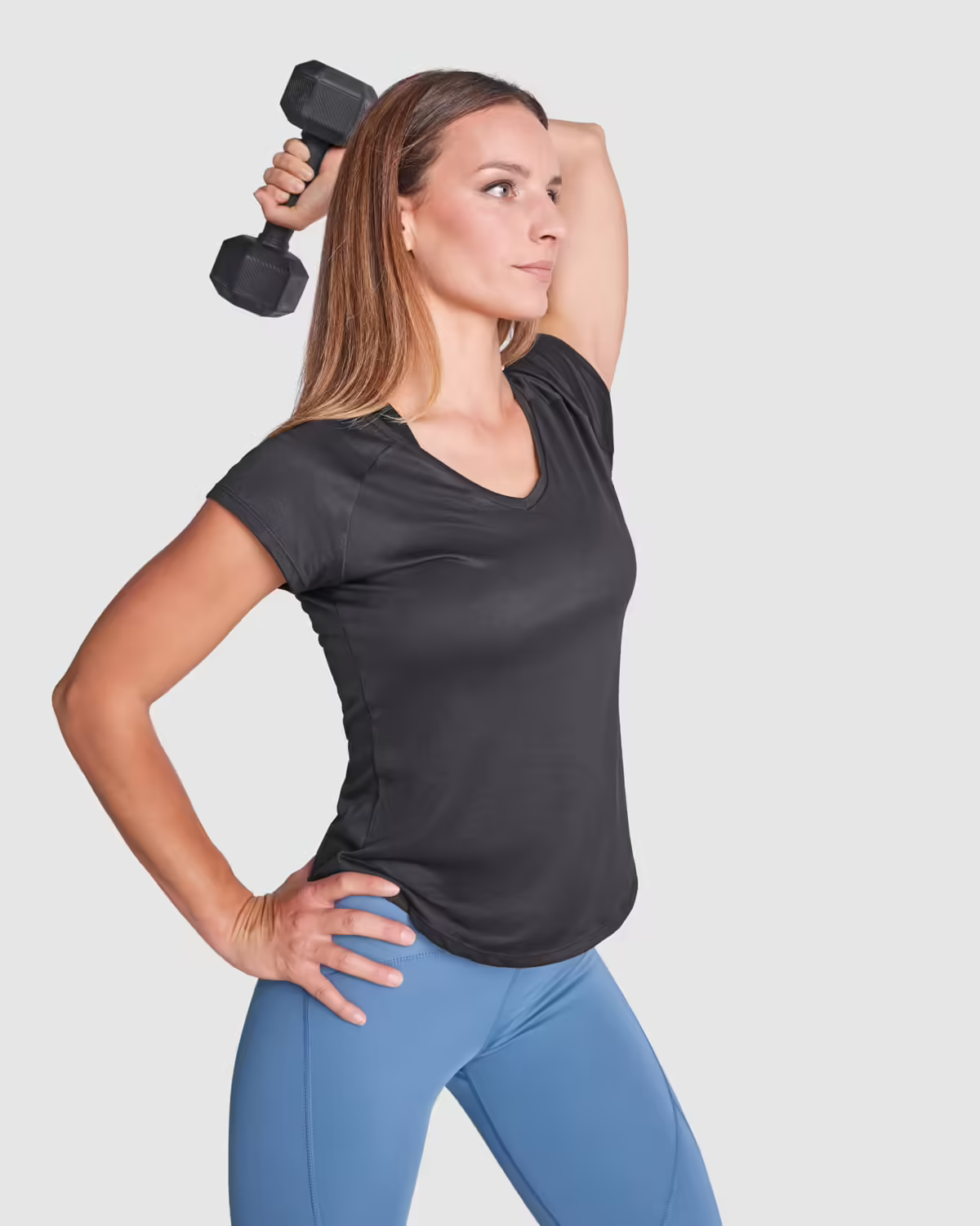 Y como tenemos clarísimo que practicar deporte sin llevar el tejido adecuado es jugar con desventaja innecesaria, nos hemos asegurado de confeccionar la camiseta multideportiva de mujer de manga corta Avus en poliéster y elastano. De esta manera, tu cuerpo extrae el sudor hacia el exterior, permanecerá seco y tendrá la suficiente ventilación para evitar un sobrecalentamiento.