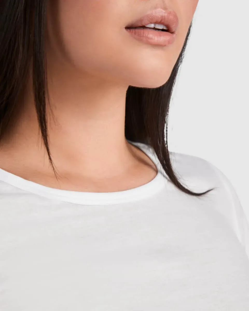 La camiseta de mujer de manga corta que ves en la pantalla tiene su qué.