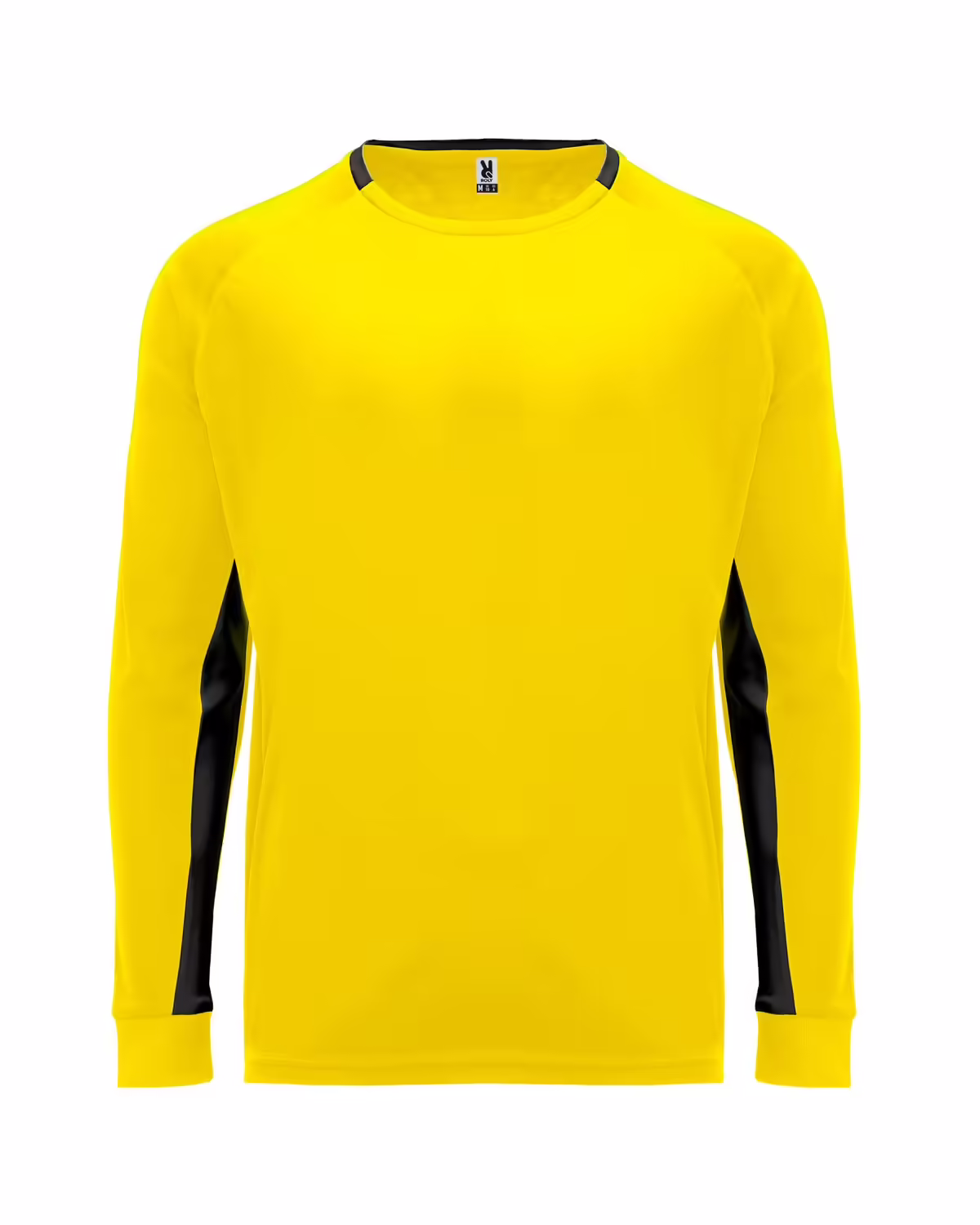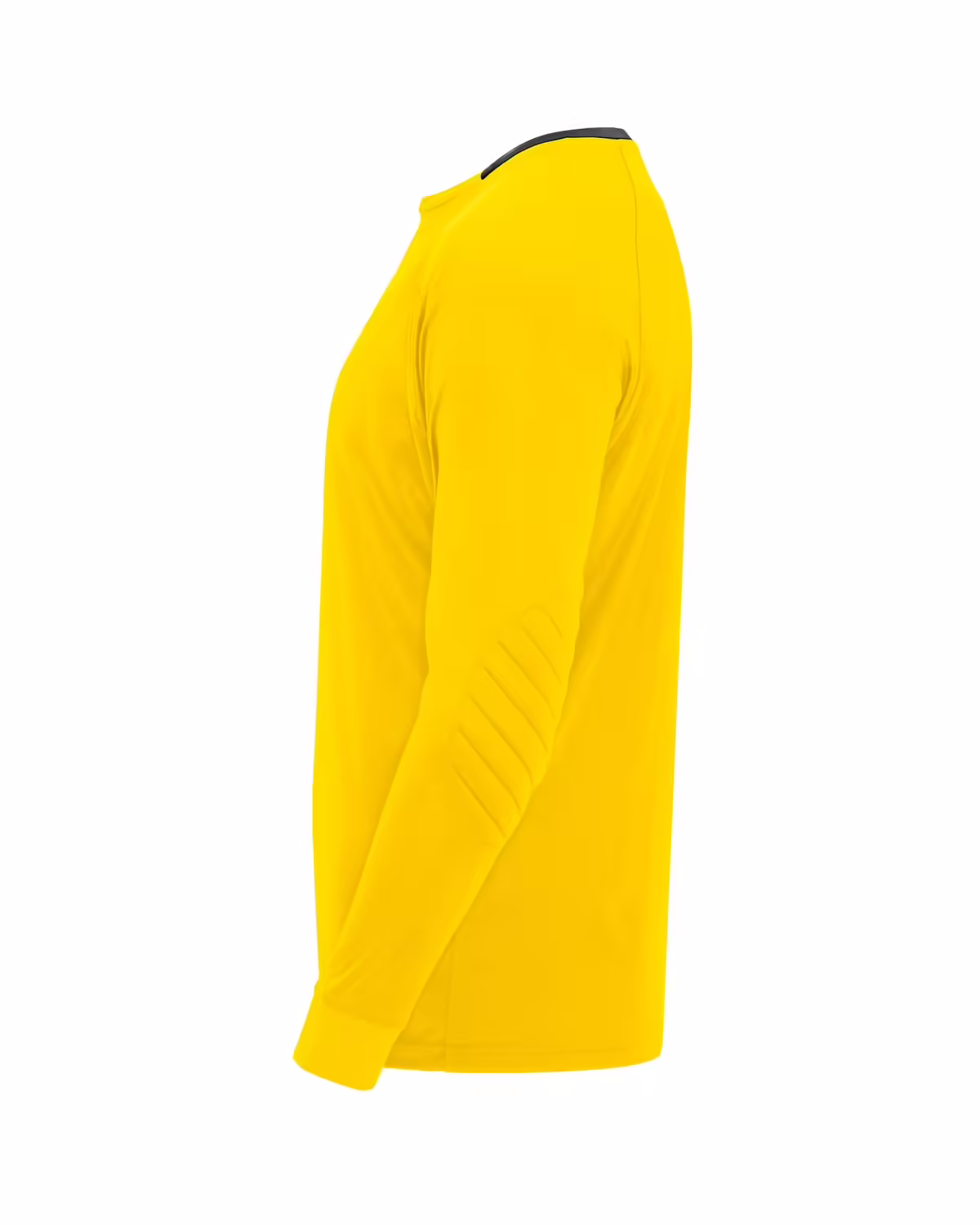 Camiseta de portero unisex. 1. Manga larga con coderas acolchadas. 2. Paneles a contraste en interior de mangas. 3. Detalle a contraste en la parte posterior de cuello y puños.
