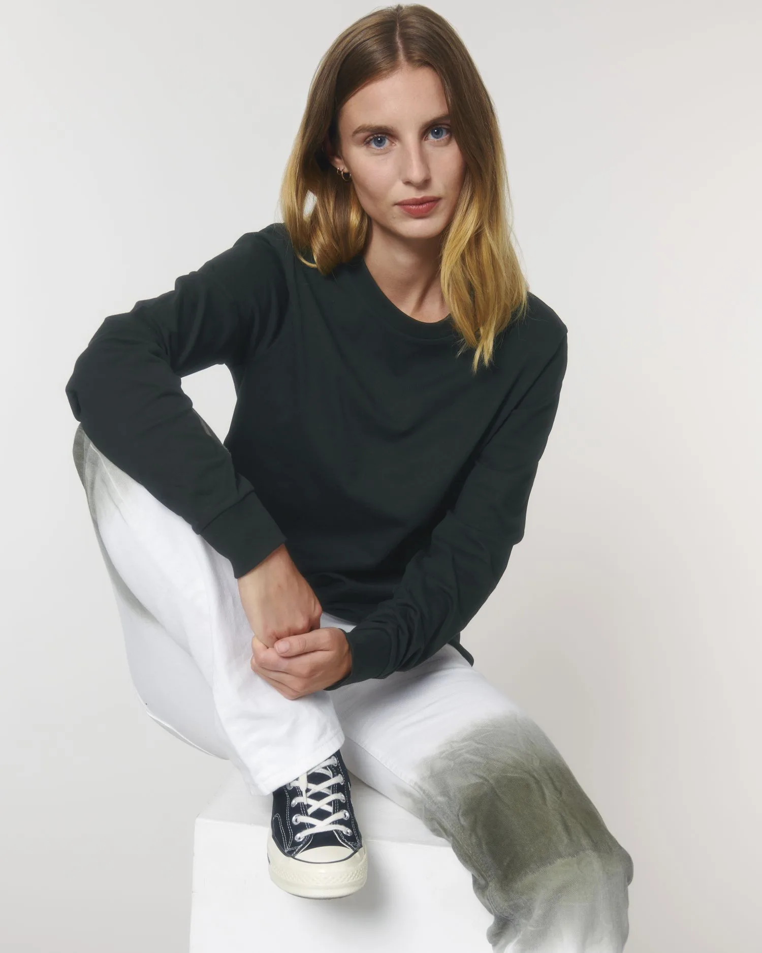 Manga pegada Canalé 1×1 en cuello y puños Bies interior de tejido principal en el cuello Puntada doble ancha en bajo