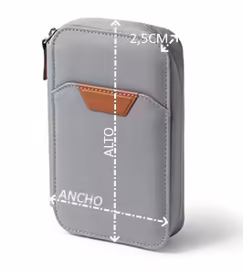 Cartera de viaje en RPET 600D y PU Leather con cierre de cremallera y bolsillo exterior. Incluye soporte para smartphone, varios compartimentos y 3 espacios para tarjetas con función RFID. Incluye soporte para bolígrafo.