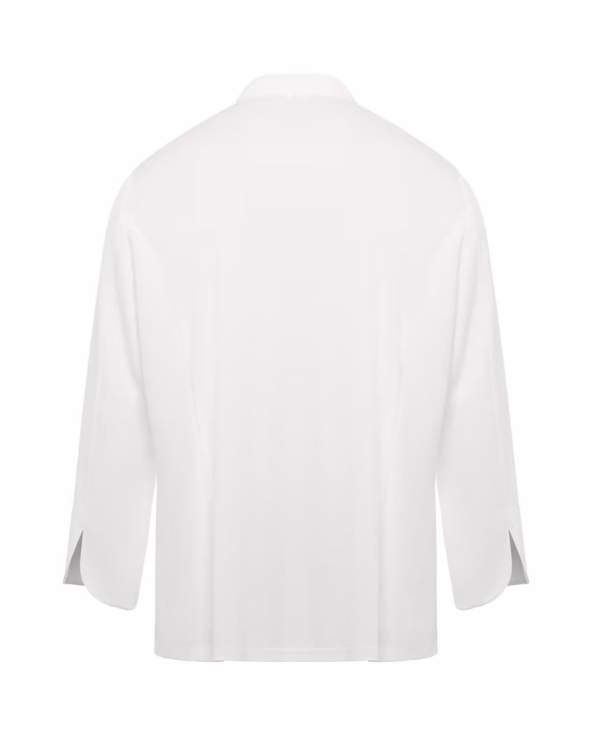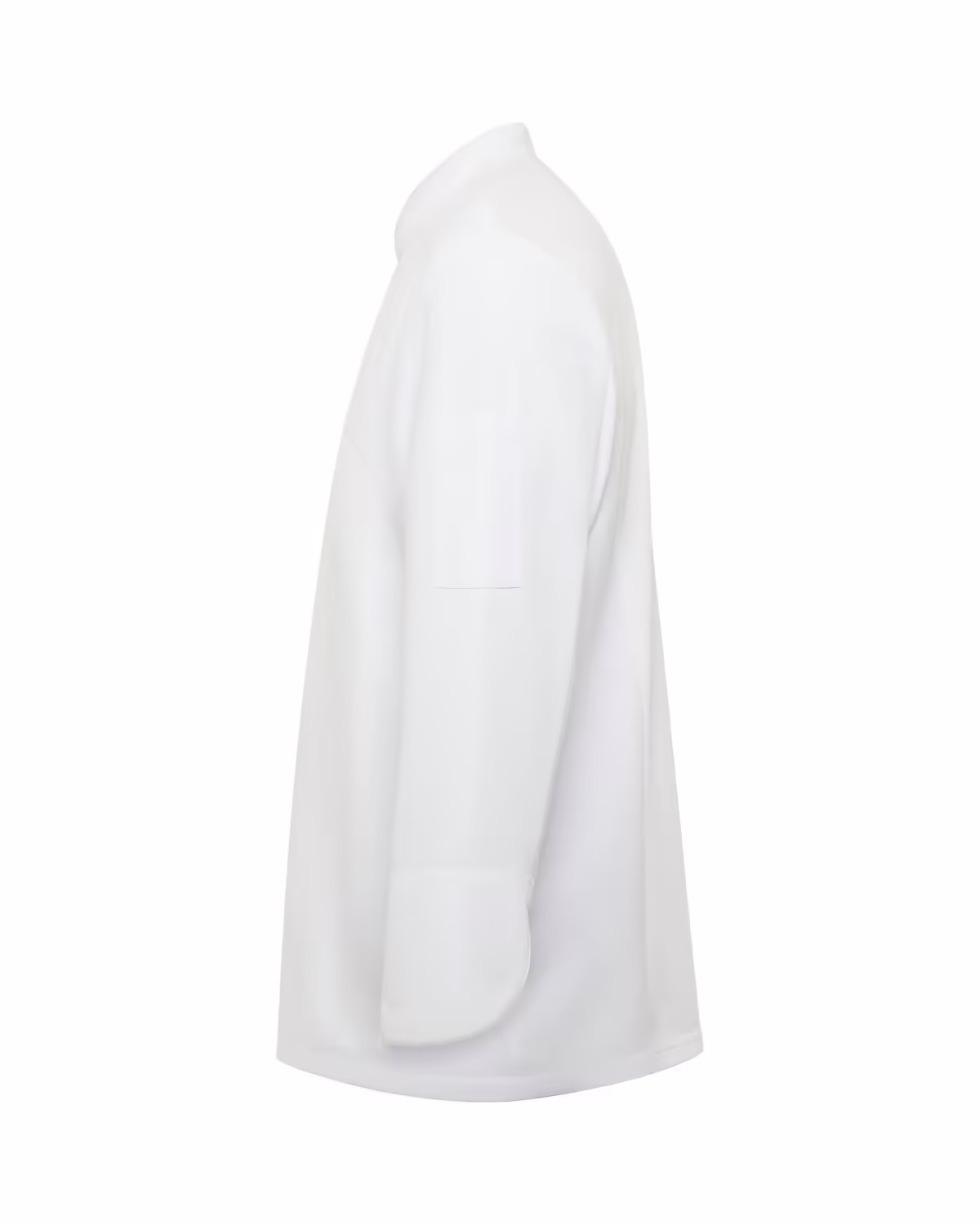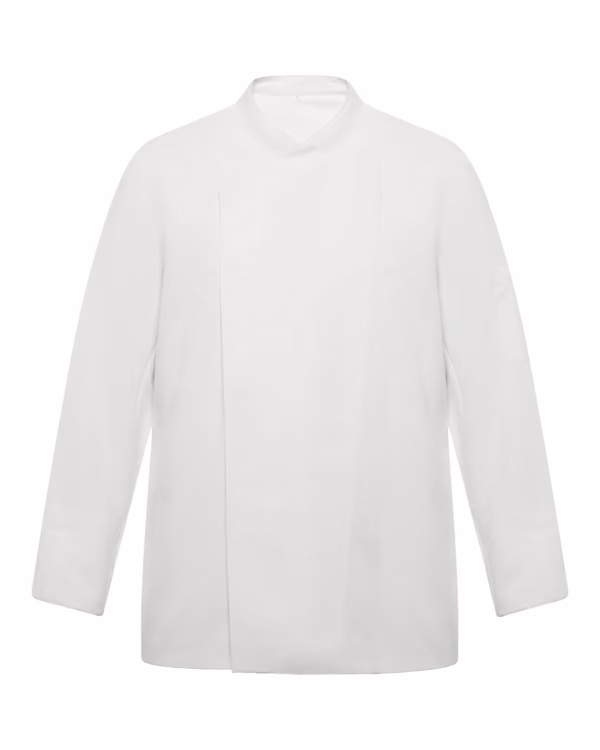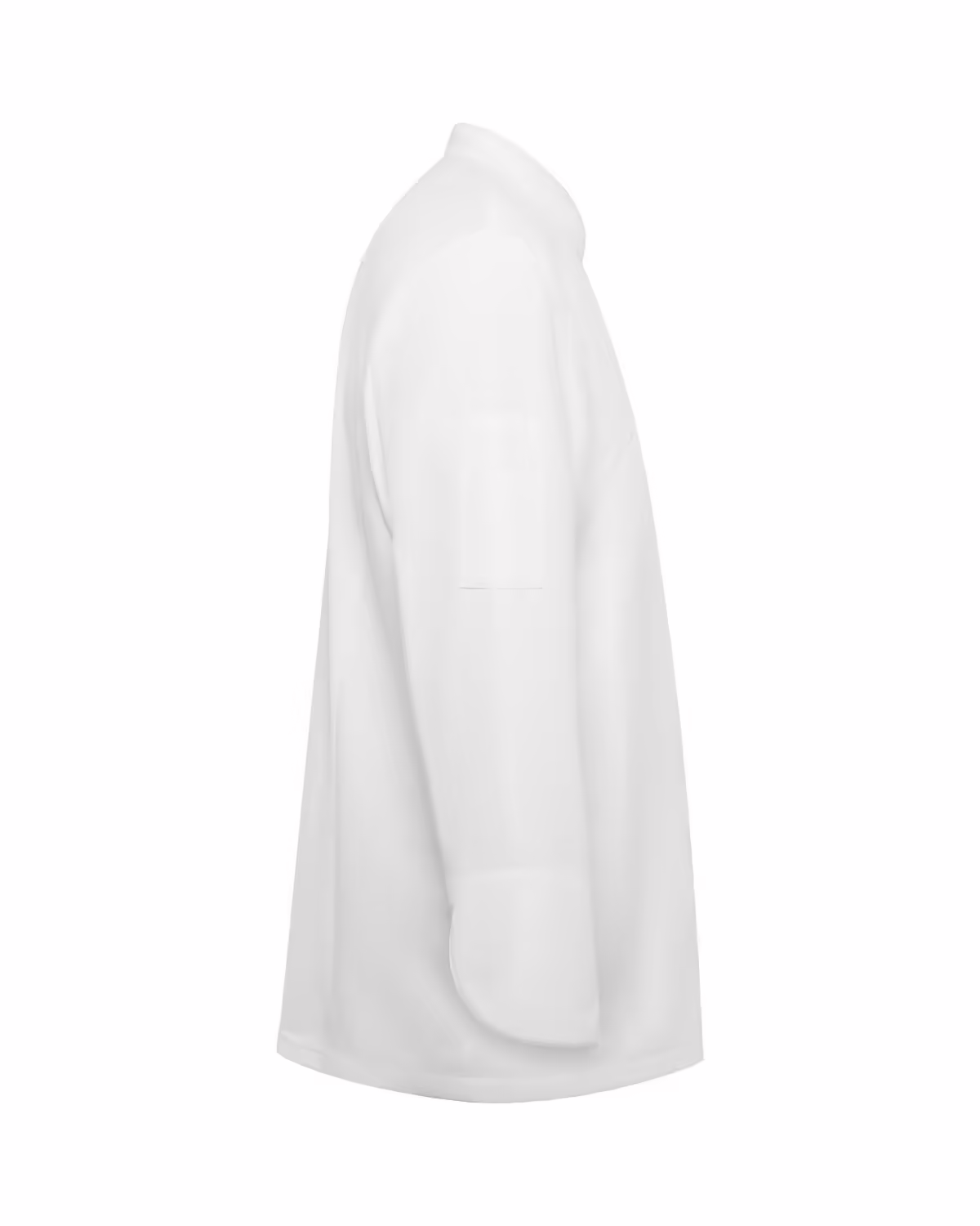 Esta chaqueta de cocinero viene con cierre central cruzado con botones automáticos ocultos, así se consigue que la chaqueta sea tan estilosa como si fuera la capa de un superhéroe, porque si lo piensas bien un cocinero es un poco superhéroe. Para conseguir que las líneas sean rectas, se ha confeccionado el cuello tirilla y manga tipo sastre con dobladillo en puños. Para comodidad del cocinero también lleva un bolsillo de parche en la manga izquierda.