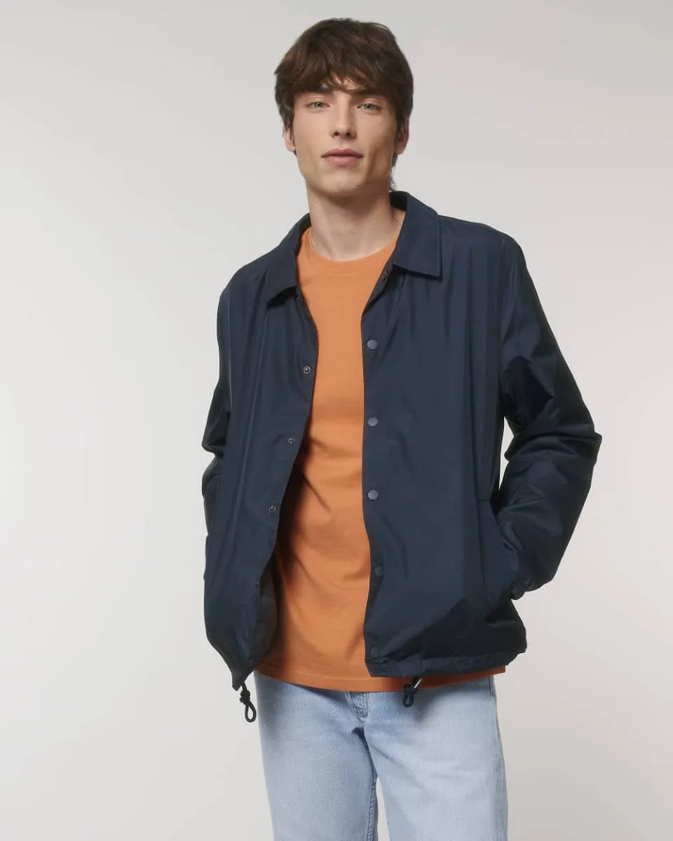 Manga pegada Cuello camisero Cierres de metal en zona central delantera Bolsillo de ojal en el frontal Cordón redondo , en el mismo tono, en el bajo rematado con extremos de acabado metálico Puño elástico Bolsillo de ojal interior en el pecho Media luna interior en tejido principal Apertura interior con cremallera en el bajo y en el lado izquierdo para ajustar a medida